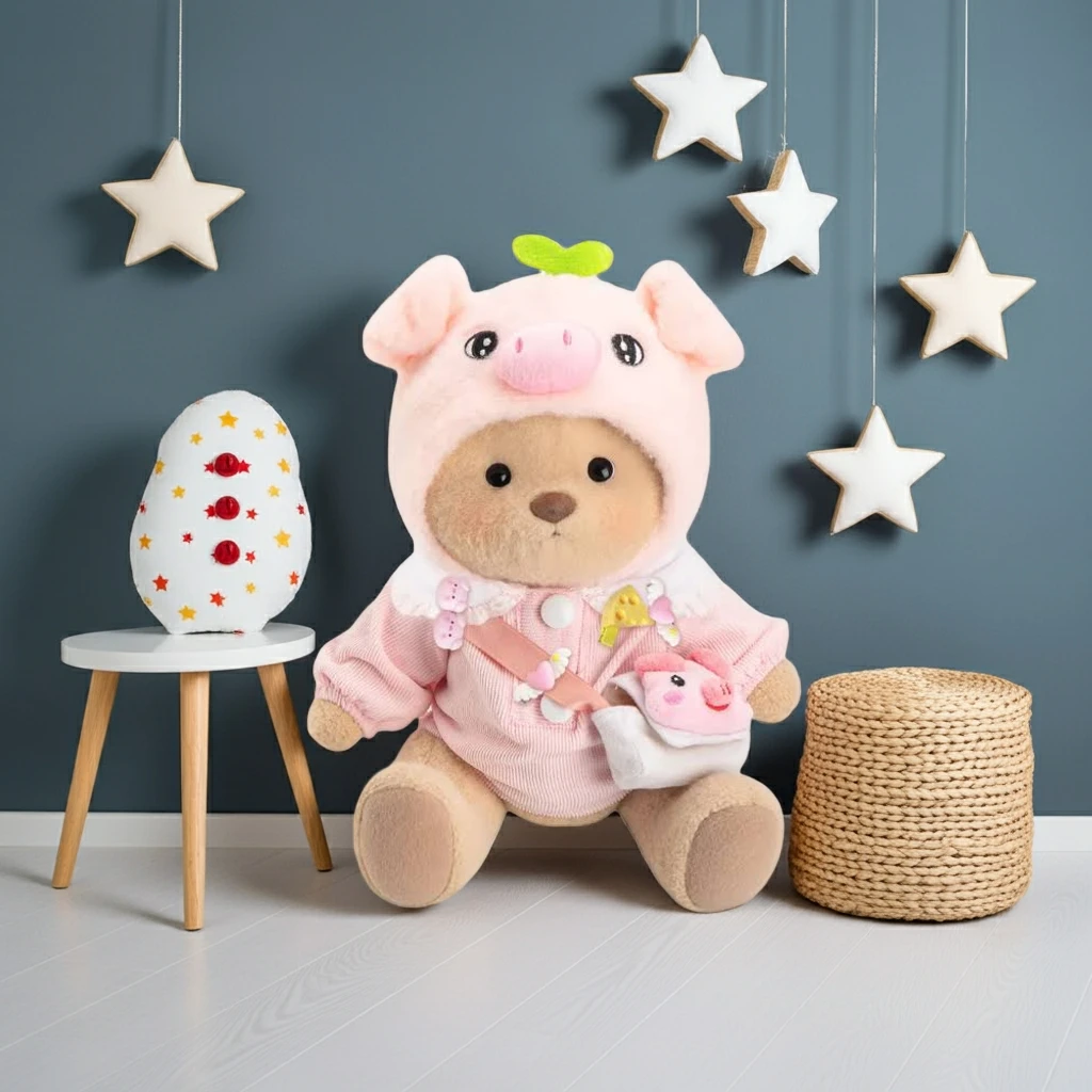 Que ce soit pour une journée pleine de jeux ou un moment câlin, ce Petit Nounours brun déguisé en cochon est toujours partant. Avec son habit original, ce petit ours en peluche de 30 cm articulé apporte une touche de fantaisie à chaque aventure et devient vite un compagnon de jeu idéal.
