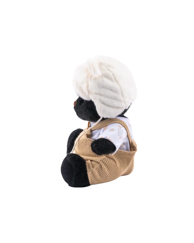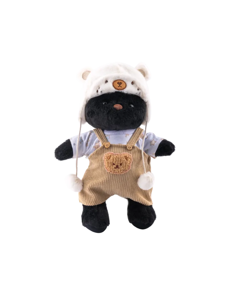 Avec sa jolie salopette marron, Petit Nounours noir dégage un charme authentique et élégant. Cet ours en peluche 30 cm articulé devient vite le compagnon de jeu idéal, prêt à inventer mille histoires et à partager des aventures complices.